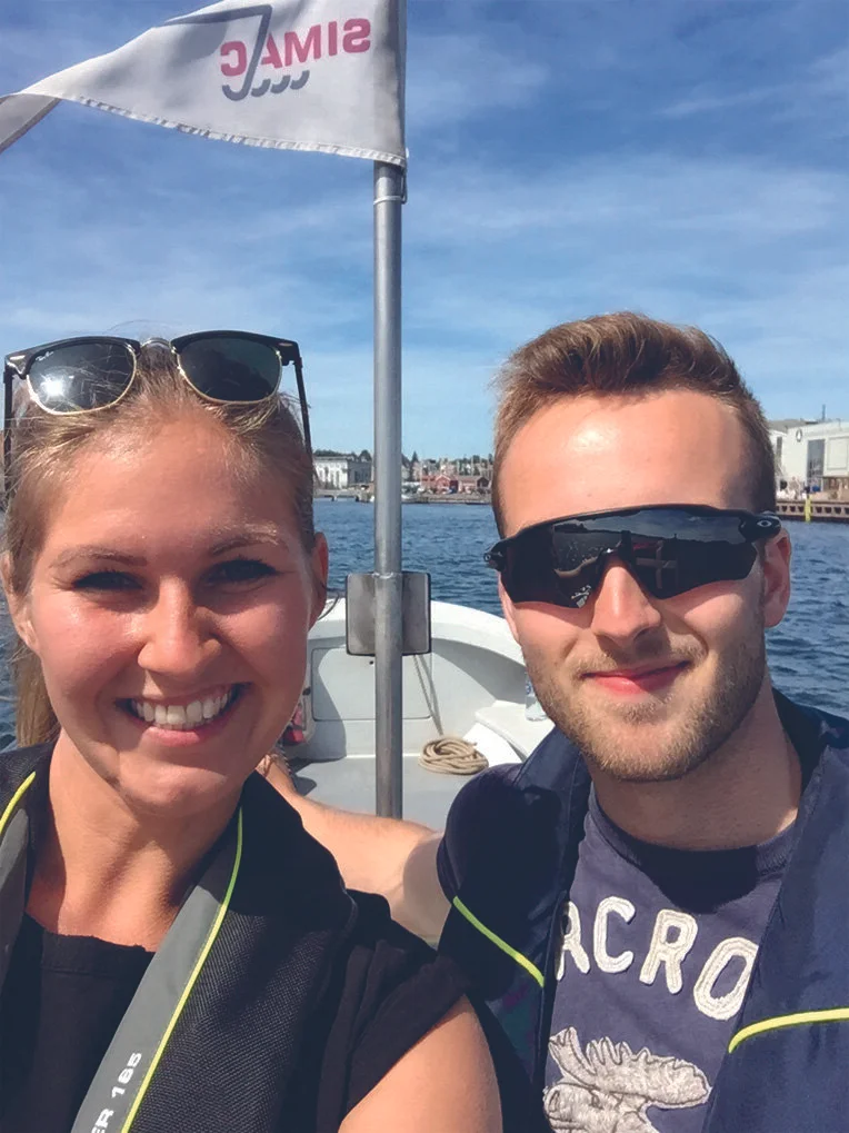 Magnus Krogh Otzen med sin mentor Anja Boytang på lystsejlads i Svendborgsund.